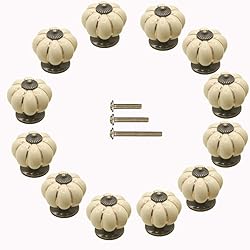 ESreake 12 Pack Yellow Vintage Ceramic Pumpkin Cabinet Knobs, Drawer Dresser Door Pulls Handles with 3 Kinds of Screws for Kitchen, Cabinets, Cupboard, Bathroom,Wardrobe Closet (12 Pack, Ivory)