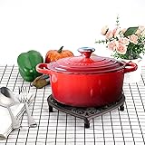 HIGH QUALITY & STURDY - These hot trivet are made of high quality cast iron material. It will last for using, don’t worry it will be broken and rusted; And it won't stick to pot, pan or plate, also easy to rinse off and clean. ATTRACTIVE AND FUNCTIONAL - These are great for keeping hot plates off your beautiful kitchen table. The cast iron trivet are thick enough which are great when you are taking stuff right off the stove to place on the table. VERSATILE TRIVETS - The sturdy and solid cast iron trivets are versatile; You can Use them as trivets to protect your table surface. They are also suitable as pan pot mats, table mats, dish mats, drying mats and pitcher coasters. They are really great house warming gift for friends and family. STRONG HEAT INSULATION - Decorative and practical design, solid cast iron material, prevent slippery and heat insulation. With them, your kitchen surface, countertop, desktop, mesa won't be burnt by the high heat pan pot any more. WHAT WILL YOU GET - Package include 2 pack trivets. Our trivets will add charm to your kitchen and dinner table while protecting your furniture and countertop from hot dishwares. Pls kindly check the size in detail before you purchase.
