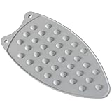 - This iron rest will make the ironing chore easier and reduce worries about the heat from the iron damaging your ironing board mat. The heat resistant silicone mat is shaped like an iron's base. It grips your iron while it heats up or cools down and protects your ironing board from burns. This is a must-have accessory for any laundry room setup. The grey color will blend with any decor. Silicone. 5-3/4"W x 10-1/4"L