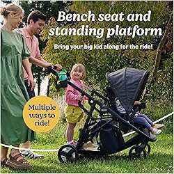 - Incluye dos asientos para carrito, un asiento banco y una plataforma para pararse para múltiples opciones a medida que crece tu familia