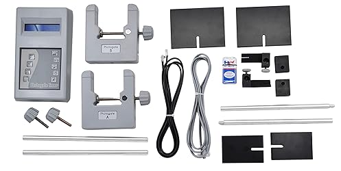 COMPLETE KIT || Complete photogate system with photogate and interrupter plates designed for use in a physics classroom when conducting a variety of different experiments ACCURATE TIMING || Photogates allow for extremely accurate timing of events in various physics experiments including when studying freefall, air track collisions, the speed of a rolling object and pendulum periods INFRARED || Uses infrared light to calculate the period of an oscillatory system, the number of times a photogate was blocked or the time an object takes to pass through one of both photogates - This can then be used to calculate the velocities and accelerations of a variety of objects INCLUDED || Includes two photogates, digital photogate timer, threaded support rods, unthreaded support rods, thumb screws for support rods, battery, sliding supports, large and small interruption screens, supports, photogate cables and activity guide - Supplied in a deep Gratnell tray EASY TO USE || Easily configured to record information at a variety of heights and angles by adjusting the position of the photogate support pole