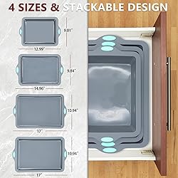 4-Piece Set - To encounter 4-piece nonstick silicone baking pans set includes the small, medium, and large size of cookie pans and one cake pan. These are a flexible, stylish, bakeware set with metal reinforced frame more strength. Sturdy Bakeware Set - These cookie pans are made from food grade silicone and metal reinforced frame to keep your baking, roasting & toasting for years. It is suitable for the oven, refrigerator, and freezer. A reliable cookie sheet oven pan style. High Heat Roasting Pan - Heat-safe even at high temperatures of up to 446F which is ideal for baking a number of tasty baked goods or pastry. Create the most delicious cookies, apple pie, brownies, birthday cake, and more. Easy to Clean - The commercial grade restaurant quality kitchen bakeware features silicone to prevent accidental burns. Also stain-resistant, easy to clean & dishwasher safe. Stackable Design - The reusable professional silicone non stick baking set feature a space-saving stackable wide tray pan design for convenient storage.