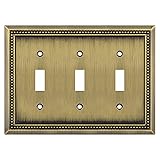 Henne Bery Sunken Pearls Heavy Duty Decorative Wall Plate Switch Plate Outlet Cover (Triple Toggle, Antique Brass)