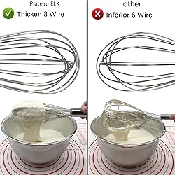 - Why choose Plateau ELK? True food grade stainless steel whisk for cooking, no rust, no need to worry about food contamination.Dishwasher friendly,If you clean the wisk by hand,you need to hang it upside down to air dry to prevent water from falling into the handle. The 12-inch balloon whisk features a thickened steel wire, no longer worrying about bending or breaking during heavy mixing,easily handle thick batter and easy to hold and clean. The 3 sizes and narrow shapes are ideal for mixing in a small bowl or container. Ergonomic design,allow a good grip.Eggbeater has manual mixing easy, effortless, efficient on any size liquid or solid batter.