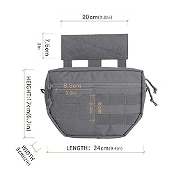 - Product Feature: Material:500D Cordura Nylon Material. With hook-and-loop panel on the back can be attached to a tactical vest, as long as your vest has a big hook-and-loop panel. If your vest don’t have the hook-and-loop panel,you can also use the Molle system to fix the drop pouch on your vest or belt as a waist bag. With two-way YKK zippers, you to quickly zip the military dump pouch shut from either both sides or access just one side of the tactical ammo drop pouch without completely opening it. This tactical pouch that includes front zipper pockets and the main compartment.Special design with elastic webbing inside for immobilizing objects. A magic sticker panel at the front, which allow you attach your patch. Front with 2 rows of molle straps,designed for attach extra useful molle pouch on the panel to extend your storage space. 2 buckle straps for attaching to tactical gears as an extra exterior pouch or carry it as a normal pouch to secure essential gears. This molle ammo dump pouch size : 9.4 "(L)*2"(W)*6.7''(H). Large magic sticker size : 7.8 "(L)*3"(W). Small magic sticker size : 3.3 "(L)*2.4"(W). Colour: Black/Coyote Brown/Ranger Green/Grey/MC/MCB. Package Included: Molle ammo dump pouch x1
