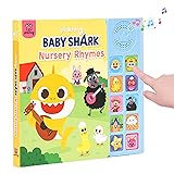 BABY SHARK NURSERY RHYMES to enjoy 9 timeless nursery rhymes songs, including the iconic 'Baby Shark' song, to read and sing along! These classic nursery songs include 'The Wheels on the Bus', 'Six Little Ducks', 'Muffin Man', 'Old MacDonald Had a Farm', and more. Perfect for babies, toddlers, and preschoolers who love Baby Shark and Pinkfong characters! OFFICIAL PINKFONG BABY SHARK BOOK that plays the iconic Baby Shark song (doo doo doo doo doo)! Our premium 10 button sound book that features 10 press-play buttons, 9 full singing songs (+ bonus Pinkfong stinger sound), and 16 colorfully illustrated pages with lyrics on non-glaring, highly durable pages. MUSICAL BOOK THAT PLAYS FULL, CLASSIC CHILDREN'S SONGS that are easy to read and sing along! Features fun music with quality sound, child-friendly designs for kids' hands, on-off switch to save battery life as well as two AAA batteries securely placed under the safety lock cover. BEST EDUCATIONAL TOYS FOR 1 YEAR OLDS, 2 YEAR OLDS, 3 YEAR OLDS that introduce multisensory experiences and assist in developing fine motor skills. Practice matching by teaching kids to press song buttons on the side panel that matches the icon on the top of each page to play the music. Singing develops listening, memory, and pronunciation skills, which are important to early literacy as well as creativity. PERFECT GIFTS FOR BOYS AND GIRLS on any occasion - birthdays, parties, baby showers, holidays, and more! Great learning toys for newborns, babies, toddlers, and preschoolers.