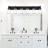 VINLUZ 6-Light Bathroom Vanity Light Fixture Black Modern Wall Lighting with Clear Glass Shade Industrial Sconces Wall Mounted Lamp for Kitchen Dining Room (Patent No.: US D958,438 S)