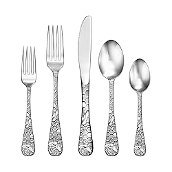 FINEST QUALITY 18/10 STAINLESS STEEL! Liberty Tabletop ONLY uses the highest quality stainless steel. All materials responsibly sourced domestically. 100% MADE IN USA! Liberty Tabletop flatware is made in Sherrill NY. The ONLY FLATWARE MANUFACTURER in the USA. 25 YEAR MANUFATURERS WARRANTY! Liberty Tabletop proudly stands by our quality. Our goal is to provide a high-quality product for our valued customers. DISHWASHER SAFE! All Liberty Tabletop flatware is dishwasher safe. Additionally, because we only use 18/10 stainless steel our flatware WILL NEVER RUST. 45PS SET INCLUDES: 8 Dinner Forks, 8 Salad Forks, 8 Dinner Knives, 8 Place Spoons, 8 Teaspoons, 1 Serving Fork, 1 Serving Spoon, 1 Pierced Serving Spoon, 1 Butter Knife, 1 Sugar Spoon