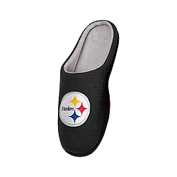 Officially licensed All-over waffle-knit, team-colored design Embroidered team logo display on each slipper Soft, memory foam interior Gripped outsole