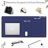 TOWWI PU Leather Desk Pad with Suede Base, Multi-Color Non-Slip Mouse Pad, 36” x 17” Waterproof Desk Writing Mat, Large Desk Blotter Protector (Dark Blue)
