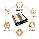 Alpaca Warehouse 100% Natural Alpaca and Sheep Wool Blanket King Size Thick Heavyweight Comfortably Warm - Great for Outdoor Use - Striped Design 103" x 90" (Beige/Brown/Gray, King)