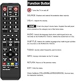 AK59-00149A Replacement Remote Control fit for samsung blu ray player No programming or setup required. convenient to use.Requires 2 x AA batteries(not included) Compatible with model: BD-ES5300, BD-F5100/ZA, BD-F5100/ZF, BD-F5100/ZX, BD-F5500/ZF, BD-FM51/ZA, BD-FM51C/ZA, BD-FM57C/ZA, BD-H5100/ZA, BD-H5900/ZA, BD-HM51/ZA, BD-HM59/ZA, BD-HM59C/ZA, BD-J5100/ZA, BD-J5100E/ZA, BD-J5700/ZA, BD-J5900/ZA, BD-J5900E/ZA, BD-JM51/ZA, BD-JM57/ZA, BD-JM57C/ZA, BD-JM59/ZA, BDMF57C/ZA. EASY to grip:Small and compact size makes this remote control easy to grip and uneasy to slip.Smooth design with natural fit and comfortable to hold. Our products have 100% satisfaction guarantee, if you are not satisfied with your purchase for any reason, please feel free to contact us.