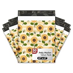 - Bring a touch of charm to your packaging with Pro Supply Global Sunflowers & Bees Print Designer Poly Mailers. This set includes 50 shipping bags, each sized 12x15 inches, crafted from low-density polyethylene with a 2.36 mil thickness on one side. Lightweight yet practical, these bags are suitable for sending a variety of non-fragile items such as clothing, hats, or small toys. Each mailer features a convenient peel-and-seal closure with a strong adhesive strip, making the packing process simple and efficient. A dark inner lining provides added privacy for contents during transit. Designed in stylish printed patterns, these mailers help small businesses and pet shops present their items with a distinctive look. Multiple size options are available, giving sellers flexibility in choosing the right fit for their products. By combining function, style, and convenience, these poly mailers offer a thoughtful packaging selection for everyday packaging needs.