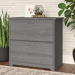 Engineered Wood STORAGE MADE STYLISH: Elevate your office decor with Bush Home's Cabot Lateral Filing Cabinet. This cabinet has two spacious drawers that comfortably hold letter, legal and A4 size files while displaying a rich and timeless appearance. SMART FEATURES: Engineered with smooth ball-bearing slides that allow drawers to glide all the way out for easy access to the back. This two drawer file cabinet also uses scratch-resistant surfaces suitable for printers, plants, and photo frames. BEAUTIFULLY CRAFTED: This 2 drawer lateral file cabinet has been charmingly designed with a traditional style and attractive finish that complements a variety of living spaces. Adorned with sophisticated chrome hardware for a refined appearance. HERE TO STAY: This home office file cabinet is manufactured using engineered wood that provides stability and resistance to warping. See the full Cabot Collection for coordinating desks, bookcases, and more items to complete your workspace. TESTING AND WARRANTY: This 2 drawer lateral filing cabinet has been rigorously tested to meet or exceed ANSI/SOHO quality standards for safety, durability, and performance and is backed by the Bush Home 1 Year Manufacturer's Warranty.