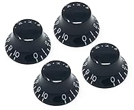 PROFESSIONAL QUALITY - High quality Black bell knobs numbered 0-10. CONTEMPORARY FIT - Recessed modern style knobs sit closer to the body and fits 18 coarse-spline (metric) Alpha style split-shaft pots compatible with most Epiphone and other import guitars. EASY INSTALLATION - Push on knobs fit snug for a secure fit. DIMENSIONS - Width: 1 1/32 in. (26mm) x Height: 1/2 in. (13mm) x 6mm shaft diameter BRAND NEW - Vintage Forge Factory Fresh Packaging