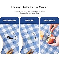 100% WATERPROOF PVC MATERIAL - The Romanstile heavy duty plastic table cloth is impervious to all liquids. No worries if the table cover is stained by oil, drinks, wines, etc. Just wipe it clean with a damp sponge! LONG-LASTING TABLE PROTECTOR - Crafted from premium vinyl material, this thick and long-lasting gingham checkered PVC table covers perfectly protect your tables and furniture from stains, scratches, heat and sun-rays. SIZE CHOICES - This 100% waterproof table cloth is available in 9 different sizes, please measure your table sizes before purchasing. The edge of the PVC tablecloth is NOT hemmed, you can cut the tablecloth to fit your tables and furniture. BEST DECOR - The Romanstile classic buffalo plaid plastic table cloths match up with a variety of tableware in the spring and summer season. It is suitable for kitchen & dining tables, holiday night events, cafes, parties, buffets, fiesta, BBQ, camping, picnic,etc. EASY MAINTENANCE - This plastic table cloth is much easier to clean up than cotton and linen fabric. No need to wash it very frequently! Wipe clean when gets dirty. DO NOT MACHINE WASH. DO NOT BLEACH & IRON. Hang to Dry.