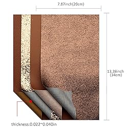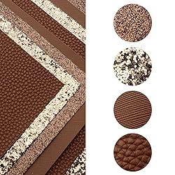 Assorted Materials:the package includes 2pcs brown chunky glitter leather sheets,2pcs brown fine glitter leather sheets,2pcs brown bump texture lychee grain leather fabric,2pcs brown printed leather sheets,8pcs in total for one set,enough for your different requests,ships flat for your inconvenience,so as no crease on the sheets. Item measurements:each sheet measures approx 7.8"x 13.3"(20 cm x 34 cm), the thickness of sheet is different, leather sheet approx is0.022-0.040 inch ,all of our sheets are hand cut and will vary slightly in size. Back of the Sheet: glitter faux leather fabric sheets back is felt finishing,easy sewing and crafting by hand or machine,if you have any trouble with the machine when cutting,scissor is highly advised. Wide Applications: perfect for kids' crafts,hair bows/wallets/bags making,hair crafts,jewelry making,sewing,craft party birthday festival decorations,earrings making,book cover,scrapbooking and holiday embellishments and other patchwork sewing crafts,DIY projects. Notice:due to the material itself,the leather sheets may have a light smell,just leave it outside for 1 to 2 days and the smell will dissipate