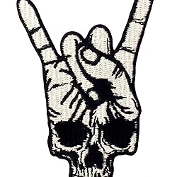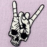 Rock and Roll Skull Hand Symbol Finger Sign Patch Embroidered Applique Iron On Sew On Emblem