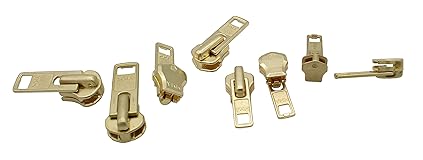 Zipper Repair Kit Solution YKK 8 Sets Auto Lock Sliders Assorted 2 of #5, 2 of #7 , 2 of #8 and 2 of #10 Included Top & Bottom Stops Metal Teeth : Brass ( Gold ) All of the Sliders - Auto Lock ( Locking ) Made in USA Color may Vary on Your Screen