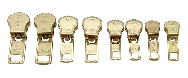 - 8 sets Auto Lock Sliders Assorted 2 of #5, 2 of #7 , 2 of #8 and 2 of #10 Included Top & Bottom Stops Made in USA (YKK Brass Auto Lock Sliders) Perfect for any YKK Jacket Zipper