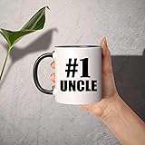 PREMIUM CERAMIC MUG: This ceramic coffee mug is dishwasher and microwave safe. The design is decorated with sublimation technology on both sides of the mug. The mug is with colored handle, rim and inside PERFECT GIFT IDEA: Imagine the look on their happy face when they open the gift box and find this cool personalized coffee mug with the quote "Number One #1 Uncle" USEFUL AND UNIQUE: Creative and customized gift that he or she will like, and they'll see it every day when they enjoy his or her favorite coffee or tea GIFT THEY'LL LOVE - Ideal gifts for your best friends, family members and loved ones. It is a fun and special present for women, men, girlfriend, boyfriend, wife, husband, him, her, couples, coworkers, colleagues and teachers. It is a thoughtful gift for your relatives, mom, dad, mother, father, mama, papa, grand-parent, grandma, grandpa, nana, tata, uncle, auntie, son, daughter, brother and sister FOR EVERY OCCASION - Unique gifts for special celebration, happy birthday party, wedding anniversary, engagement proposal, housewarming, graduation ceremony, retirement and memorial. It makes a novelty and great gift for holidays like Mother's Day, Father's Day, Valentine's Day, Christmas Xmas and Thanksgiving