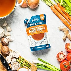 Bare Bones Beef Bone Broth for Cooking and Sipping, 16 oz., Pack of 4, 100% Grass-Fed, Protein and Collagen Rich, Keto Friendly