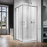 - This double center on sliding corner shower enclosure and hardware is beautifully designed and operates smoothly. According to the detailed instructions and substantial visual help supplied, the components are easy to install. The appealing 36" x 36" x 72" corner shower enclosure is finished in brushed nickel and has an attractive appearance and modern design. The quality of workmanship of the double sliding shower door is stunning. WHY YOU NEED ELEGANT SHOWER DOOR? 1. Enjoy your shower by creating a comfy privacy space. 2. Keep your bathroom always tidy and clean. 3. Stylish: Make your bathroom modernized. 4. Safety: ANSI-certified tempered glass keeps you far away from cracking accidents. 5. Saving Spacing: Chrome finish shower stall makes the most of the space in the corner and is ideal for small bathrooms. Brand: ELEGANT Shower Door Style: Sliding glass with stationary glass panel Glass Thickness: 1/4'' clear tempered glass Hardware finish: Brushed Nickel Professional installation recommended Package Includes: 1 x ELEGANT 36 in. D. x 36 in. W. x 72 in. H. 2 Opening Sliding Shower Enclosure, Double Sliding Shower Door 1/4 in. Clear Glass, 2 Stationary Panels, Brushed Nickel