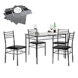 VECELO Dining Table Set with 4 Chairs [4 Placemats Included], Black