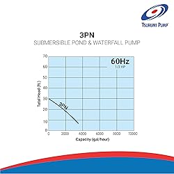 The 3PN pond pump has a stainless-steel housing and a fiberglass reinforced plastic impeller, volute, and top cover that provide maximum corrosion resistance and durability. The 3PN pump comes standard with a 20ft cord. The white mineral oil used in the oil chamber creates a safe environment for a thriving and safe garden pond ecosystem. This water feature pump is rated for 3,540 gallons per hour and handle solids up to 0.4 inch in diameter. It has a maximum head of 30 feet and can be used in various water garden applications. It also has a dual inside mechanical seal with silicon carbide faces that prevent leakage and extend the life of the submersible pond pump. Tsurumi is a world leader of submersible pumps in the construction, rental, and water features markets. Engineered for durability, Tsurumi products outlast the competition in pump life, product offering and cost savings. Tsurumi products come with a 2-YEAR WARRANTY and are UL & CSA certified. Please contact Tsurumi (America), Inc. with any questions or concerns.
