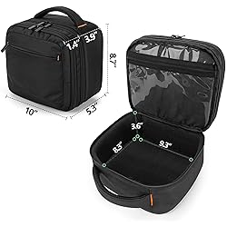 FITS FOR: Projector storage section dimensions 9.3" x 8.3" x 3.6". This projector carrying case is compatible for DR.J Professional* HI-04, QKK* Mini Projector, VANKYO* LEISURE 3W, XGIMI* Halo, or other major mini projector. (For other brands and models, pls check the dimensions.) (*CURMIO carrying case is unrelated to brand referred) WELL MADE: Bottom compartment has large capacity to keep your projector and accessories in place. (Bag only, NOT includes machine and accessories.) KEEP ORGANIZED: Top compartment has 6 elastic loops and bottom slots for storing HDMI cable, AV cable, remote control. Interior transparent pocket and front zipper pocket for other accessories or personal items. BETTER PROTECTION: Heavy duty nylon fabrics with soft velvet lining protects your projector from dust and scratches. Thick padded lining helps to reduce the damage of dropping into ground. EASY TO CARRY: Padded top handle makes it convenient for carrying your projector and accessories to business meeting, events, travel or parties.