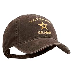e4Hats.com U.S. Army Veteran Military Embroidered Washed Solid Pigment Dyed Cotton Twill Brass Buckle Cap