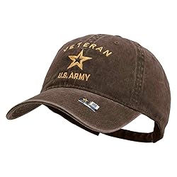 - Title, U.S. Army Veteran Military Embroidered Washed Solid Pigment Dyed Cotton Twill Brass Buckle Cap Military-Inspired Style, Add a touch of military pride to your wardrobe with the U.S. Army Veteran Washed Brass Buckle Cap One Size Fit, One size fits most Adjustable Buckle, Fits up to XL with an adjustable buckle strap Crown Depth, Crown measures 3 1/2 inches deep Low Profile Build, Low profile, 6 panel cap with unstructured crown Natural Cotton, Made of 100% cotton Pre-Curved Bill, Pre curved bill measures 3 inches long Matching Underbill, Front and bottom bill color are the same Cap Size, 8(W) X 11(L) X 4(H) inches Soft Material, Thick, soft and light material Unisex Fit, Adult/Unisex All-Season Wear, All Season Care Instructions, Hand wash only Imported Quality, Imported