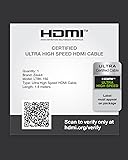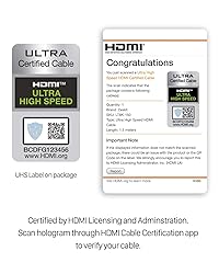 Slim and flexible 1.5m/5ft cable Ultra High Speed HDMI Certified with Hologram Sticker 48Gbps bandwidth for latest features HDR, HDCP 2.2 & 2.3, DTS:X, Dolby Atmos, Dolby Vision 8K60, 4K120 & up to 10K resolution, Dynamic HDR, eARC, ALLM, QFT, QMS, VRR Backward compatible with earlier versions of HDMI and can be used with any HDMI devices