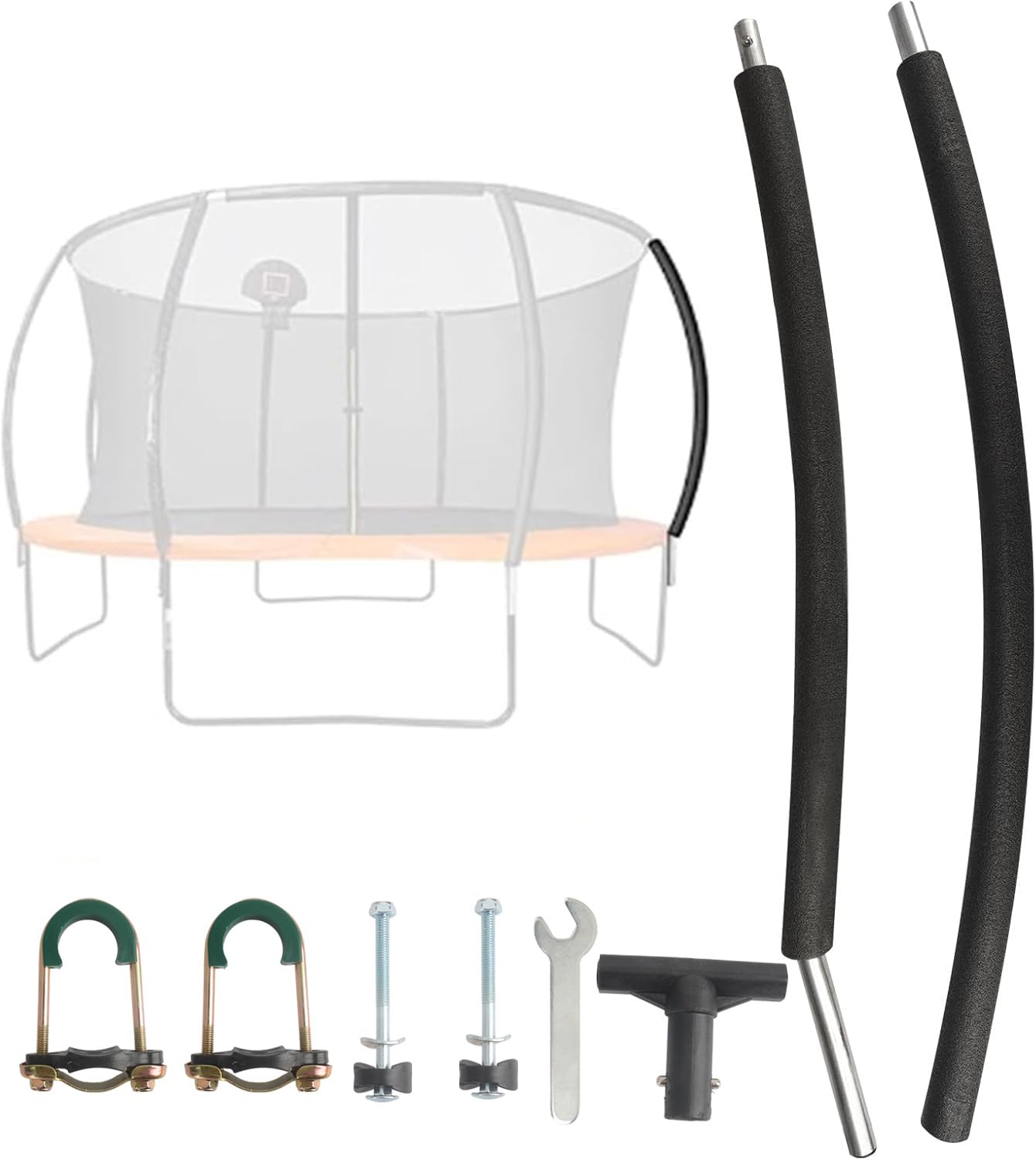 TRAMPOLINE STAKES KEEP YOUR TRAMPOLINE IN PLACE - If you have a trampoline, it is necessary to add these heavy duty wind stakes to reinforce and keep it in place when trampoline is used, especially in the place always meet hurricane or other strong wind. Use these trampoline stakes, no trampolines hit your windows, no trampolines every where after strong wind. TRAMPOLINE ANCHORS KEEP YOUR KIDS SAFETY - Kids' safety is the first priority. With 11.8” stake underground, these anchors will keep your trampoline from flipping or moving during use, and kids will not fall off or hit to ground. For baby's safe and get peace of mind, every parents should consider to get some extra stuff to keep trampolines or Kids' Soccer Goals. These anchors are the BEST CHOICE in no doubt. HEAVY DUTY GALVANIZED STEEL & ANTI RUST & EASY TO USE - Trampoline anchor kit manufactured from ultra durable steel, galvanized coated, keep stakes from rust in outdoor used. The diameter of the steel is 0.24", it is big and strong to provide extra safety. Sharp Ends of stakes for easy insertion into the ground. UNIVERSAL FIT & WIDELY USE - These trampoline stakes anchors high wind are 2.4 inch in inner width, that means our stakes fit better for different sizes of trampolines or soccer goals. These strong stakes, sink deep into the ground, also great for securing camping tents, huge Christmas Outdoor Decoration, fences, tarps, garden cloth, hoses and more. SHARP-ENDED - It is really an ideal tool for keeping trampoline, soccer goals, tents firm and in place. And quite good to used as garden stakes too. Special sharp ends help you to install super easily no matter in solid or sand.