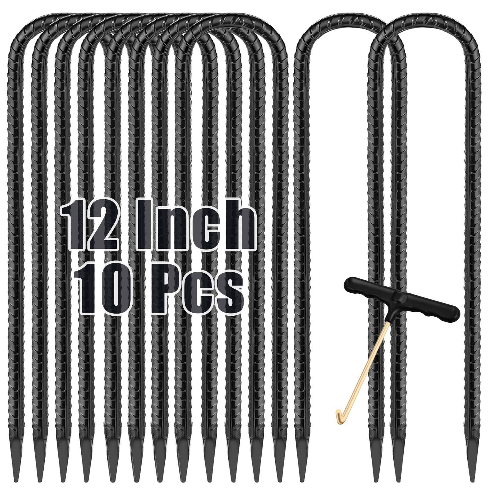 Trampolines Wind Stakes Heavy Duty U Type Sharp Ends Safety 12inch Ground Anchor Galvanized Steel for Soccer Goals, Camping Tents and Huge Garden Decoration (Trampoline Anchors 8pcs)