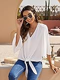 Kancystore Womens Button Down V Neck Tie Knot Front Tops 3/4 Sleeve Chiffon Casual Blouse Shirts