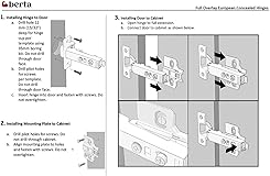 - Berta 4-Pack Full Overlay Frameless Soft-Close European Hinges, 110° 3D Adjustable, Clip-On Concealed Kitchen Cabinet Door Hinges with Screws - Ideal for Modern Cabinets