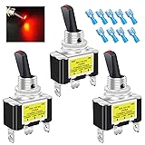 Twidec/3Pcs Rocker Lighted Toggle Switch 30A 12V DC SPST ON/Off 3Pin Car Automotive Boat with Red LED Illuminated Light