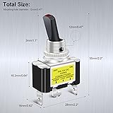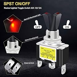 Product Name: LED Toggle switch; Rating: 12V 30A DC Type: ON/OFF; Connector type: SPST,3 terminal pin;Perfect for custom wiring or switch replacement,Blade-type terminals facilitate easy wiring and installation. Switch Actuation Style: Rocker style;LED Color:Red;Each terminal has a female terminal for easy connection Total Size(Approx) : 28 x 16 x 56mm/ 1.1" x 0.62" x2.2"(L*W*H);Mounting hole diameter: 12mm/0.47" Package content: 3PCS LED toggle switch + 9PCS Terminal