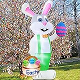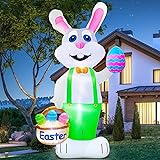 TURNMEON 8 Feet Giant Bunny Easter Inflatables Outdoor Decoration, Lighted Blow up Rabbit Holds Easter Eggs Basket with Tether Stakes LED Light Easter Decor Home Yard Lawn Garden Party Easter Egg Hunt