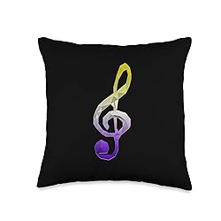 Nonbinary Polygon Musical Treble Clef Geometric NB Enby Flag Throw Pillow