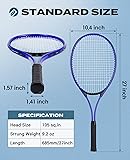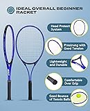 IDEAL FOR TEENS & STUDENTS: The cool Navy Blue design is a favorite for high school students, teenagers, and boys. It’s the perfect 27-inch starter racket for PE classes, tennis camps, or club practice BUILT FOR BACKYARD & CAMPUS: Tough enough for learning. Made with Thickened Impact-Resistant Aluminum, this set features a Reinforced Joint designed to handle the rough usage of beginners and students learning the game in backyards or parks LIGHTWEIGHT SPEED (280g): Heavy rackets slow you down. Our Lightweight Design helps young players swing faster and react quicker at the net, building confidence in their volley and serve HIGH-BOUNCE PRACTICE BALLS: Includes 3 Pressureless Tennis Balls that maintain bounce on concrete or clay. We provide quality balls so you don't have to keep buying new balls for casual play COMPLETE TRAVEL KIT: Everything fits in the Reinforced Carry Bag with an adjustable shoulder strap. Includes 2 extra overgrips for extended handle life. A reliable gear set for the school season