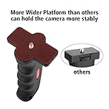 Universal Handle Grip:Easily mounted to any DSLR camera,LED video light,Gopro,smart phones and any devices with 1/4" thread hole! Multifunctional Use:With 1/4" threaded hole at the bottom,you could mount it on tripod,monopod or other devices. More Wider Platform Design: Anti-slip rubber plate,protect your device from scratching;With wide platform, it will hold the camera more stably. Ergonomics Design Handlegrip: Finger-shaped anti-slip handle design, very comfortable to us. With additional anti-lost camera wrist strap,it allows you to connect the handle grip with the wrist for easy holding. Great Shooting Accessory : Lightweight and portable design,it can meet various outdoor or indoor shooting needs.Note: handle grip and wrist strap only,NOT include camera/smartphone/ phone clip mount /gopro adapter.