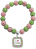 Scwasen CWSEN Sorority Paraphernalia Gifts Sorority Jewelry Bracelet for Women I Love Necklace Pink and Green Jewelry Greek Sorority Gift