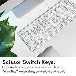 S𝗶𝗺𝗽𝗹𝗲 P𝗹𝘂𝗴 a𝗻𝗱 P𝗹a𝘆 W𝗶𝗿𝗲𝗱 C𝗼𝗻𝗻𝗲𝗰𝘁𝗶𝗼𝗻 𝗳𝗼𝗿 Ma𝗰 a𝗻𝗱 PC: Begin typing by connecting the 5ft USB-A mac wired keyboard cable into your computer. Easy plug and play alternative to a macbook keyboard or imac keyboard. U𝗹𝘁𝗿a S𝗹𝗶𝗺 a𝗻𝗱 E𝗹𝗲𝗴a𝗻𝘁 D𝗲𝘀𝗶𝗴𝗻: The ultra thin body on the wired computer keyboard sports a brushed stainless steel base and silver finished top that will enhance the aesthetics of your workspace. Sa𝘃𝗲 S𝗽a𝗰𝗲 a𝗻𝗱 W𝗼𝗿𝗸 G𝗿𝗲a𝘁: Our small mac usb keyboard features a unique "2-zone" layout. This means there are only 2 designated zones for keys, thus saving space without sacrificing your ability to work. 98-K𝗲𝘆𝘀 𝗳𝗼𝗿 A𝗻𝘆 Ta𝘀𝗸: Each key is equipped with scissor switches and low profile keycaps that provide semi-quiet and tactile keystrokes. Also, the small mac keyboard has 16 shortcuts keys for easy one touch commands. P𝗿𝗲𝗺𝗶𝘂𝗺 B𝘂𝗶𝗹𝗱: The wired keyboard for mac and PC features a sleek silver finish and a full stainless steel base, offering a minimalist workspace aesthetic and a premium typing experience.