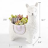 Adorable alpaca succulent planter - Cute and colorful alpaca design make them a good addition to your home or office and hold small plants, herbs, or even flowers so you can create a more natural, welcoming ambiance indoors. The appearance of the alpaca are lifelike and adorable under 100% hand painted and exquisite craftsmanship. Dimension - 4.5x 3 x 5.7 inch (LxWxH). Material - Made of high quality material fired at high temperature which makes them featuring a glossy and shiny glaze. Planter and beautiful ornaments - They are not only a planter ideal for your kitchen counters, windowsill, or a small space our ceramic succulent pots to grow succulent plants or a mini cactus, but also servers as a cute artwork for your home decor and office table. Each one equips a drainage holes underneath and a plastic mesh pad. Thoughtful housewarming Gift –A wonderful gift idea for friends or family.