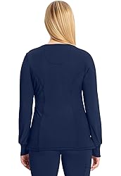 - Women's Long Sleeve Scrubs | Concentrated Comfort with Three Pockets - This Infinity scrubs for women features long sleeves to keep you warm in cold doctors' surgeries. The long sleeves also provide extra coverage. This nurse uniform features a trendy crew neck with a rib knit yoke at the front of the neck for a sporty look. There are also princess seams at the front and back for a flattering fit and shape, as well as a rib knit panel at the center back for comfort and ease of movement. All rib knit is tone on tone for a clean, professional look. Two large front pockets provide ample storage space. An inside pocket on the right and pen slots on the front pockets offer even more storage options. Front shoulder inserts for sporty design. Elastic loop at right shoulder. Side vents.