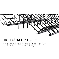 The plier rack is made of high grade metal wire molding with a PVC coating, protect the rack and pliers from slipping 2pcs plier rack: 15" x 5.5" x 2.5" and total of 30 slots for a combined. Keep Pliers Organized in Tool Drawer. Simple & Effective Plier Rack can help you declutter your tool box, free up space on your work bench and helps you keep track of your tools. Keep them right where you want them, whether keep pliers organized in a tool drawer, junk drawer, tool chest, or counter space CASOMAN is a professional tools, provide 1 year quality warranty for our users.