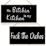 Jetec 2 Pieces Funny Kitchen Signs the Dishes Hanging Wall Art Decoration No Bitchin in My Kitchen Rustic Wooden Wall Signs Decorative Wood Home Decor, 10 x 5 Inch(Stylish)
