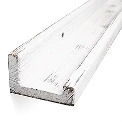 - You can Organize Your Small Space with These Rustic Shelf Wall Mountable Display Ledge and Create Farmhouse Décor in Budget Complete the decor of your home by adding finishing touches to your walls. Empty walls make a home decoration look incomplete, so complete your decor like a professional and showcase your talents in designing. Look through decorating and design ideas on Pinterest and replicate the high-end designs you see for a fraction of the cost. Perfect hanging wall decor to display just about anything, with reasonable price, you can use them as dorm shelf to store memorable and collectible items You can create a wall of determination by showcasing your photos, awards, trophies, collectible vinyl records, comic books and other things. Great for teen girl room decor Great as kitchen shelves wall mount in your kitchen, above the toilet storage in bathroom, above bed shelf in bedroom, nursery or kid’s room as well. It can house all your toiletry, perfumes, cookbooks, spices or pantry essentials. The shelves make a great gift for a housewarming or Christmas, make someone happy for a holiday or special occasion. Specifications: Material: Solid Wood Color: Washed White Product Measurements: L 36" D 3 3/8" H 2 1/4" Package Content Information: 1 36 Inch Wood Wall Mounted Ledges and Mounting Hardware